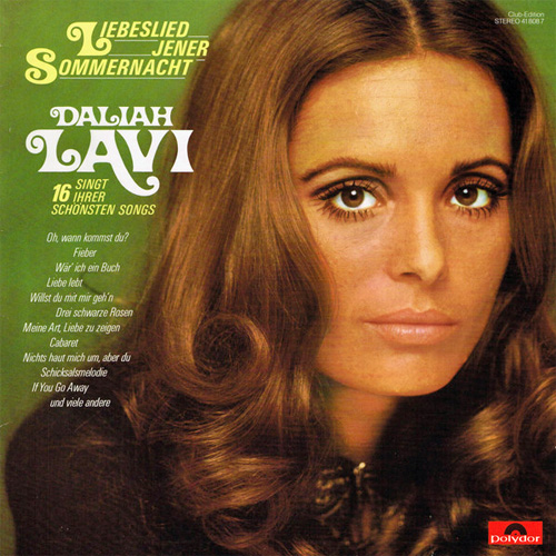 Eine Auflistung einiger der internationalen Daliah Lavi Alben und der Bertelsmann Buchclub Veröffentlichungen. Dabei ist die allererste Aufnahme ‚Yerushala’im Shel Zahav‘ von 1968 auf der Langspielplatte ‚Israel 20‘ von Stanley Black. Ebenso die sehr seltene italienische LP auf dem RARE Label. Der Bertelsmann Buchclub hat von 1971 bis 1977 mehrere Alben von Daliah Lavi mit anderer Titelzusammenstellung veröffentlicht. Teilweise mit Liedern die auf keiner regulären LP zu finden sind. Auf der Club Sonderauflage ‚Herzlichst ihre Daliah Lavi‘ finden Sie die Singleversion von ‚Schwabadaba Ding Ding‘, ein Titel der auf keiner regulären Daliah Lavi LP erschienen ist.